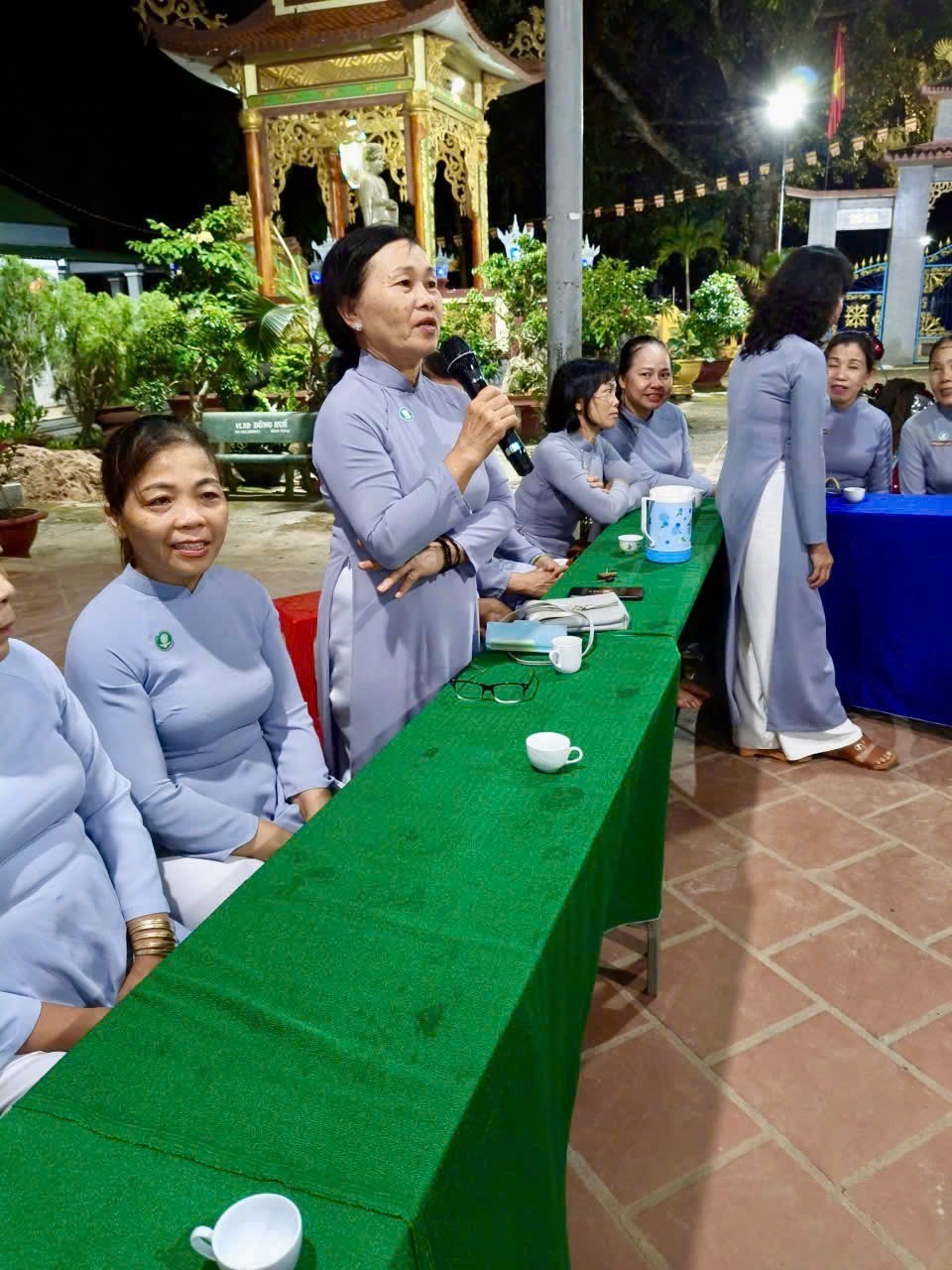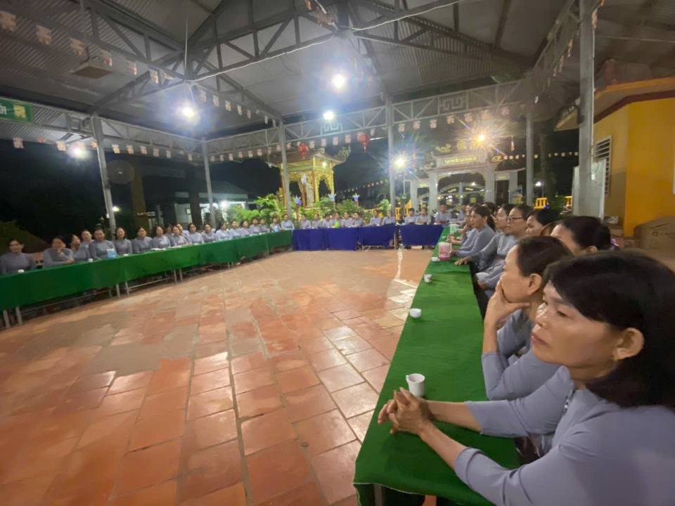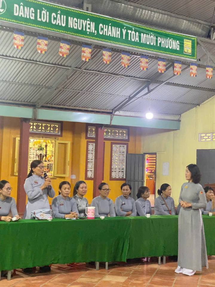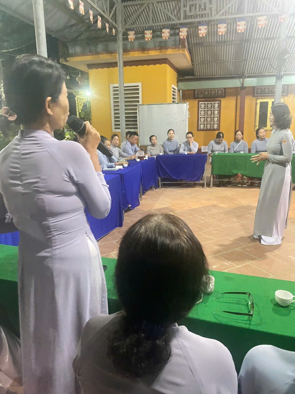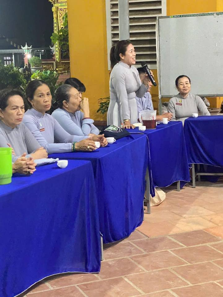 Sau nghi lễ truyền thống, chị Ủy viên Nữ Phật tử đã có đôi lời động viên tinh thần cầu học đến với quý anh chị Đoàn sinh. Được sự hỗ trợ từ Ban Nghiên huấn, tối nay chị Khánh Phương đã tận tình chia sẻ với ngành Thanh Vùng Vương Xá đề tài “PHÁT TRIỂN HẠNH PHÚC GIA ĐÌNH THEO NGŨ GIỚI VÀ THẬP THIỆN”. Đây là một đề tài rất gần gũi và thiết thực đối với Đoàn sinh GĐPT, nên quý anh chị các đơn vị đã thảo luận khá sôi nổi. Tiếp theo, anh Nhật Dung cũng có lời sách tấn tinh thần tham gia tu học của quý anh chị trong vùng.