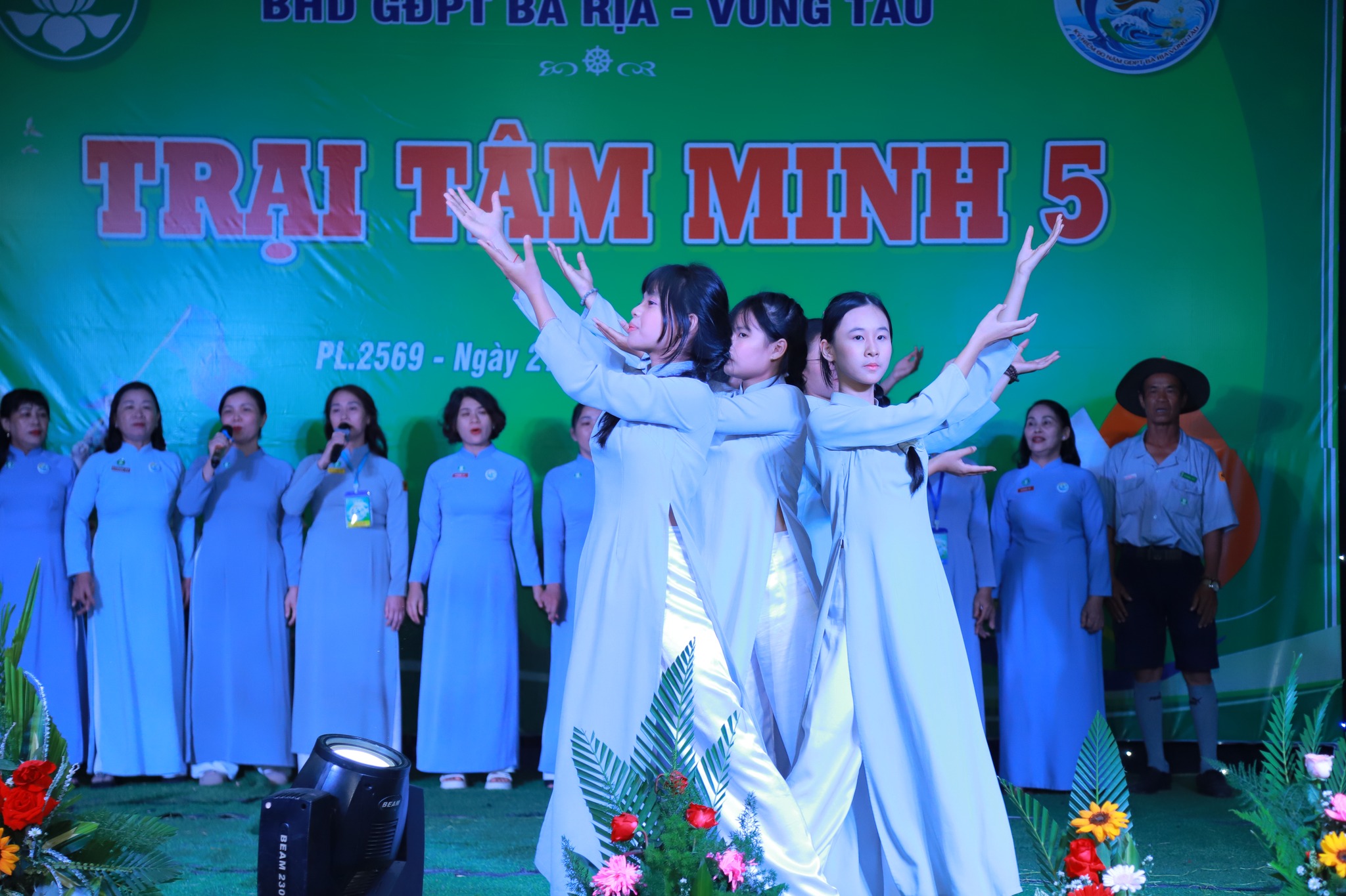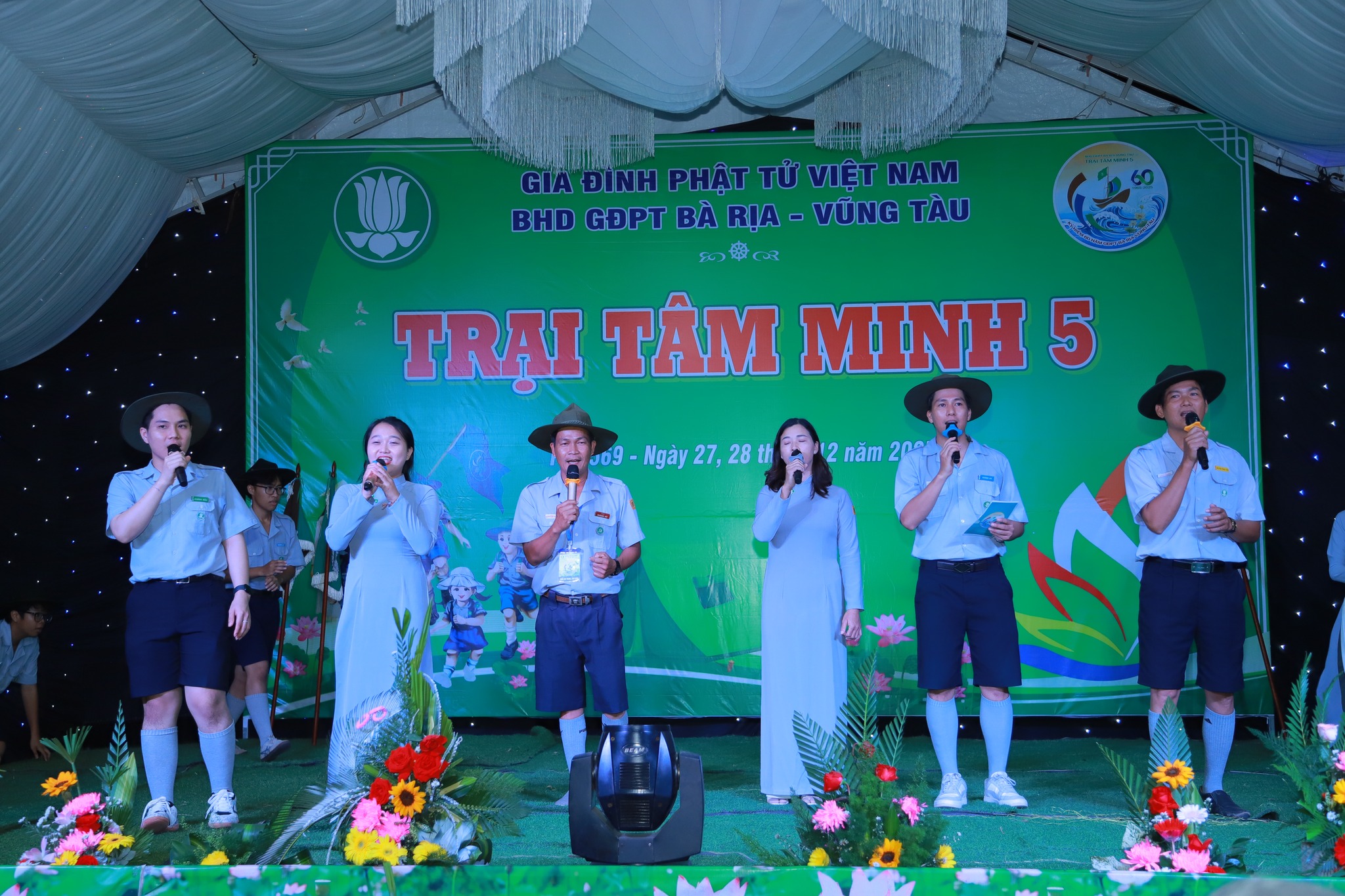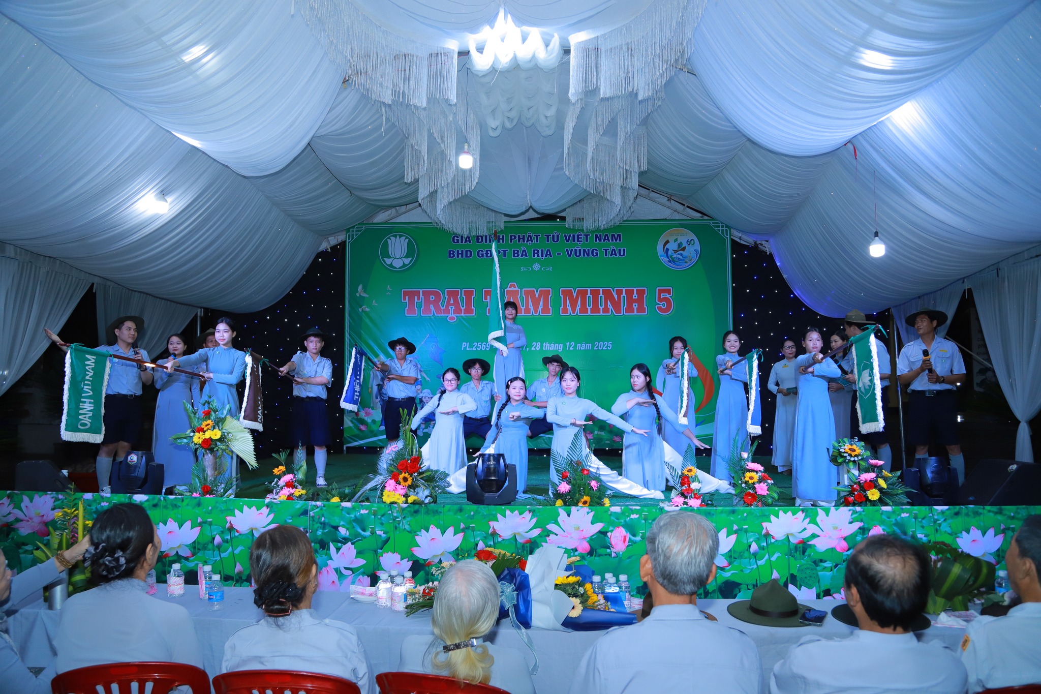 Khi ánh đèn sân khấu bừng sáng giữa không gian lam viên Như Ý, đất trại Tâm Minh 5 như rộn lên niềm cảm xúc của tiếng hát, tiếng vỗ tay và nụ cười hân hoan. Đêm Đạo Ca kỷ niệm 60 năm Gia Đình Phật Tử Bà Rịa – Vũng Tàu chính thức diễn ra, mang theo không khí tươi vui, ấm áp và tràn đầy năng lượng của tình Lam sum họp. Đây là đêm đạo ca tri ân bậc tiền bối, người sáng lập GĐPT VN, quý anh chị Huynh trưởng đã hy sinh, giữ gìn, trao truyền và tiếp nối lý tưởng áo lam qua từng lời ca, tiếng hát. Các tiết mục được chuẩn bị chu đáo, trình diễn đặc sắc, để lại nhiều cảm xúc đẹp trong lòng áo lam.