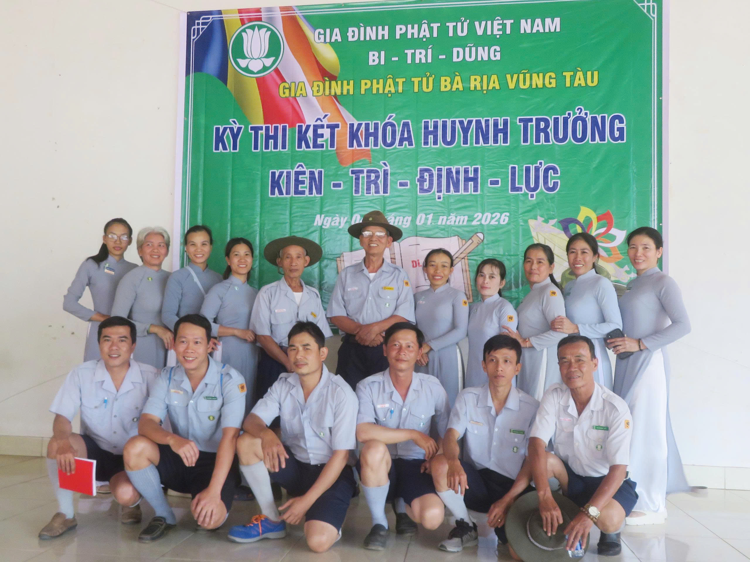 Hôm nay ngày 4/01/2026 GĐPT Bà Rịa Vũng Tàu tổ chức thi kết khoá các bậc học huynh trưởng Kiên – Trì – Định – Lực tại chùa Lạc Bang, Châu Đức.