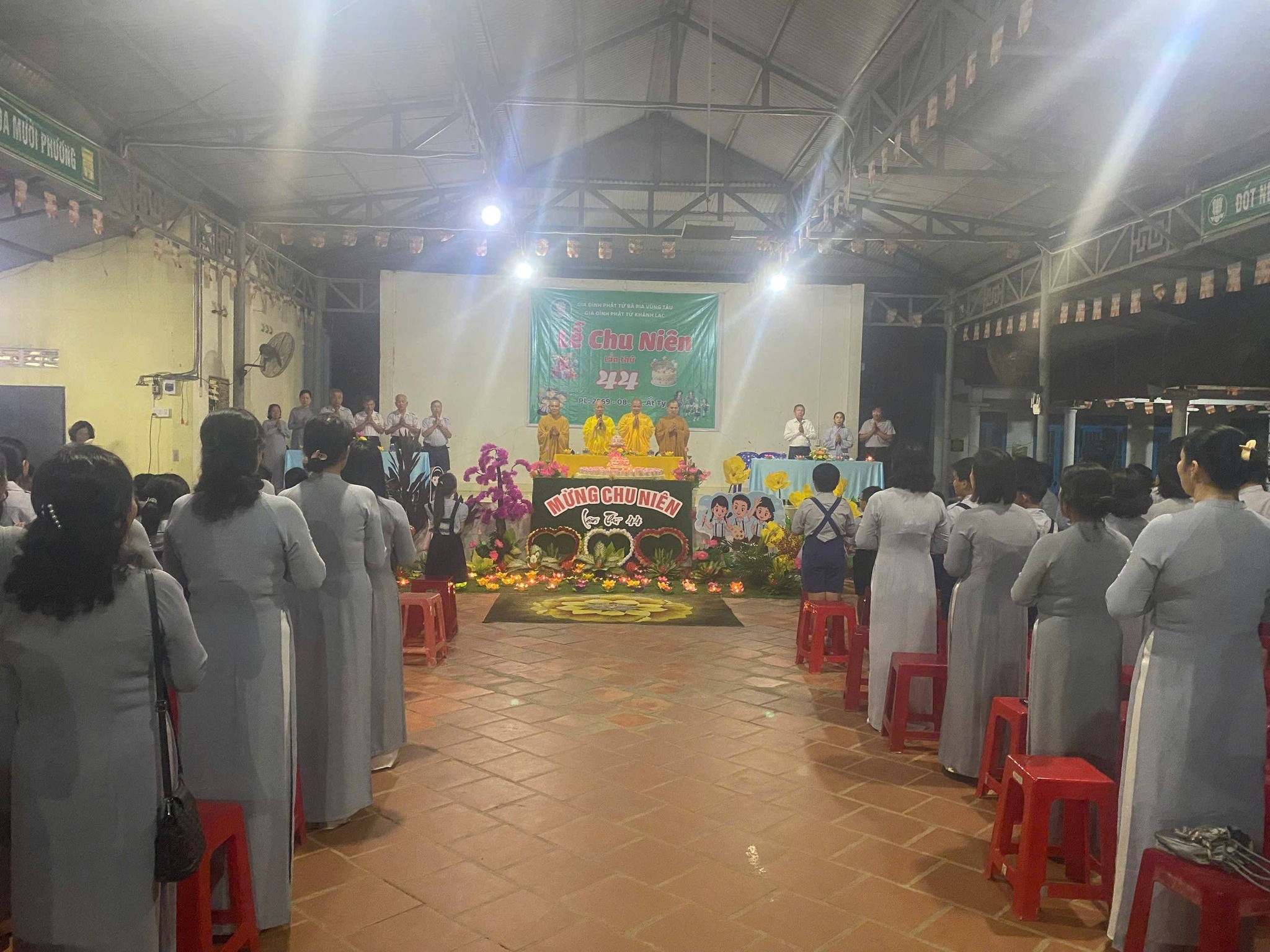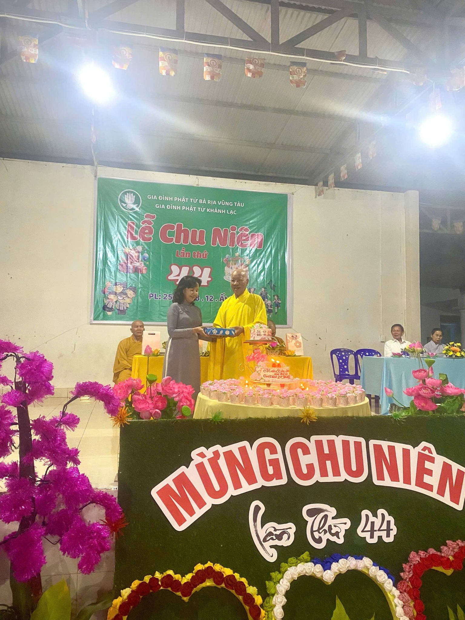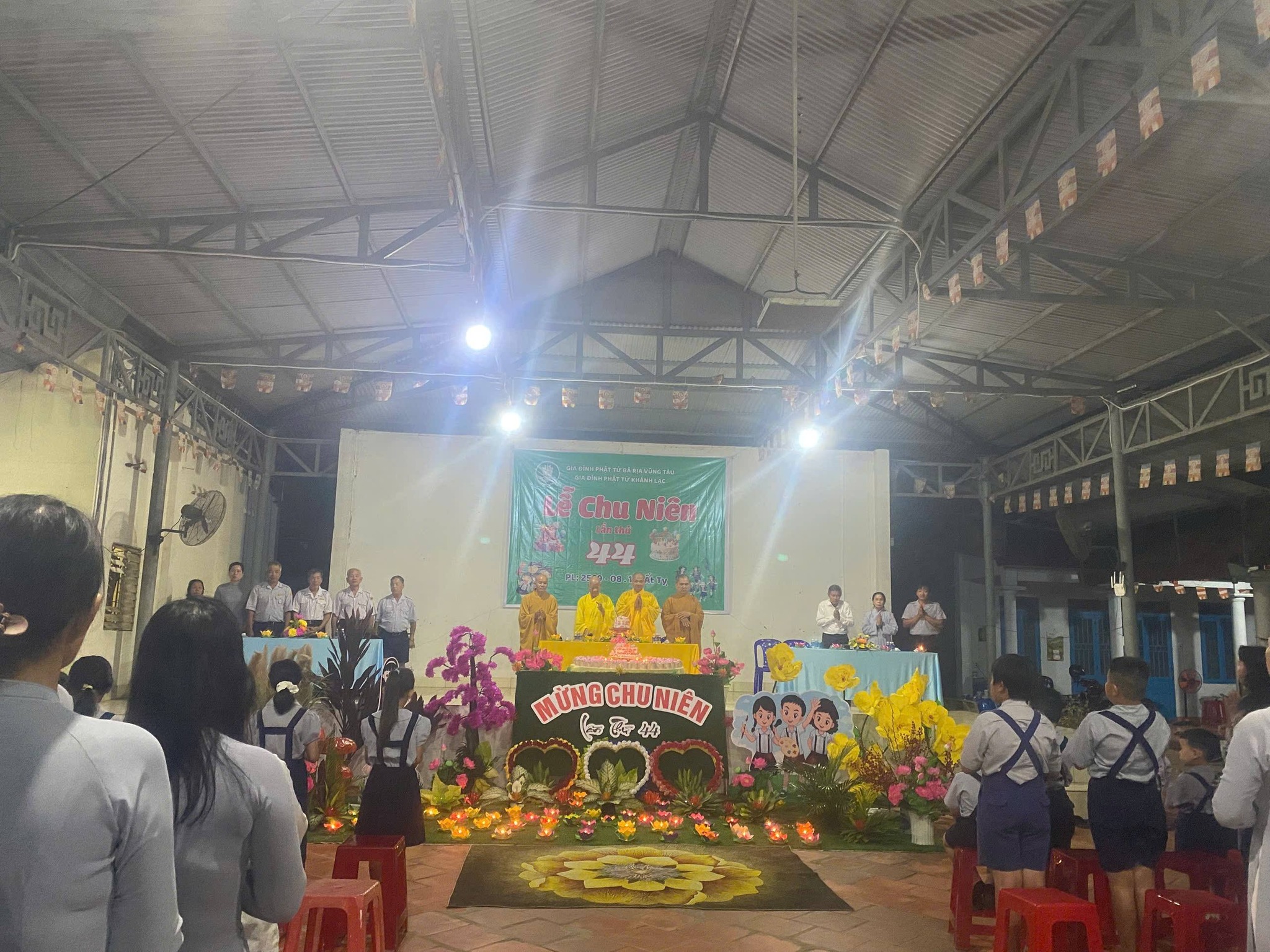 Buổi lễ Chu niên hôm nay dưới sự chứng Minh của Hòa Thượng Đạo hiệu Thích Từ Tri Trù trì chùa Lạc Bang, Ân sư của Gia Đình Phật Tử Bà Rịa Vũng Tàu. Thượng tọa Thích Thông Việt Cố vấn giáo hạnh Gia Đình Phật Tử Bà Rịa Vũng Tàu cùng nhị vị Đại đức tại trú xứ chùa Lạc Bang đồng chứng minh.