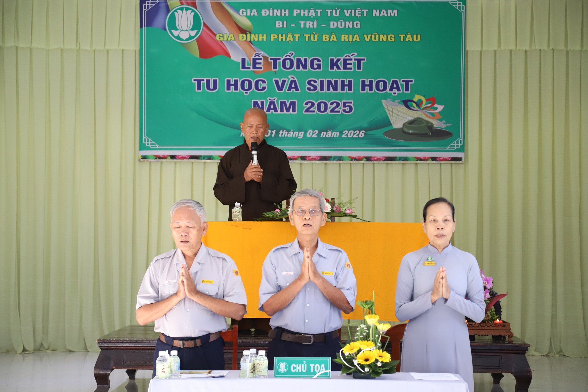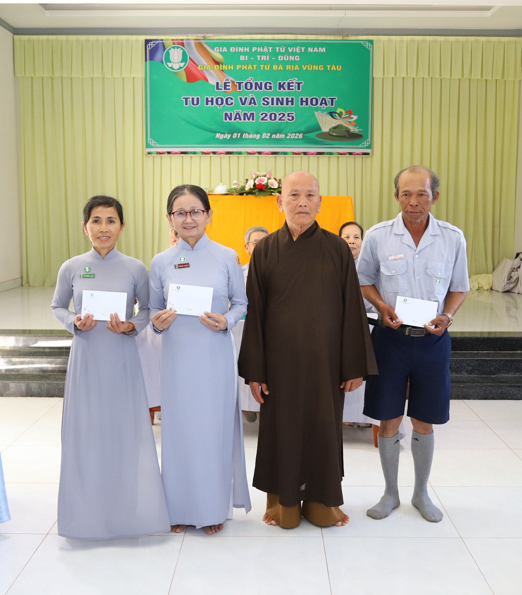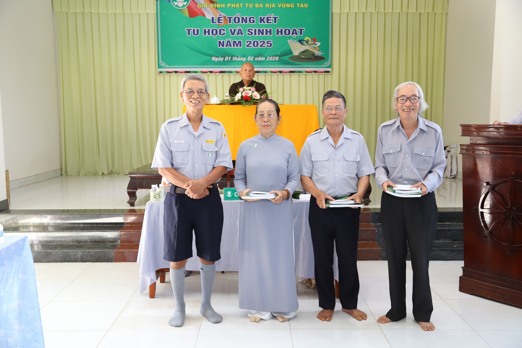 Sáng ngày 01 tháng 02 năm 2026 tại chùa Như Ý, BHD GĐPT BRVT tổ chức lễ Tổng kết tu học và sinh hoạt năm 2025. Hòa thượng Thượng Minh hạ Bảo – Thành viên Hội đồng TGBT, Phó trưởng ban BTT HĐGG GĐPTVN, Trưởng ban Ban cố vấn Giáo hạnh GĐPT BRVT quang lâm chứng minh buổi lễ. Buổi lễ có sự chủ tọa của Huynh trưởng Cấp Tấn Tâm Chế – Võ Hữu Khiên cùng 2 Anh Chị Phó Trưởng ban BHD. Tham dự lễ tổng kết có 120 Huynh trưởng là Thành viên BHD, Ban đại diện các huyện, thị, Hội đồng Huynh trưởng các cấp và đại diện BHT các Đơn vị GĐPT trực thuộc. Về quan khách có sự tham dự của Đạo hữu Trưởng ban BBT Tâm Tánh – Nguyễn Văn Tình cùng quý Đạo hữu trong BBT GĐPT BRVT.