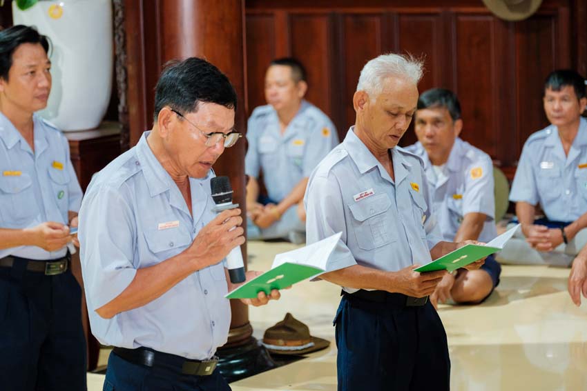 Sau phần nghi lễ, các Huynh trưởng tân thăng đảnh lễ Tam bảo, dâng lời phát nguyện; Huynh trưởng Trưởng ban BHD TƯ – đại diện Tổ chức GĐPT.VN – thừa nhận lời phát nguyện, ban Huấn từ đến các Huynh trưởng tân thăng; Hòa thượng đạo hiệu Thích Khế Đạo – đại lao Chư tôn đức Hội Đồng Giáo Giới GĐPT.VN – ban đạo từ khuyến tấn quý anh chị phải thực hiện đúng bổn phận, trách nhiệm người Huynh trưởng cấp Tấn GĐPT.VN.