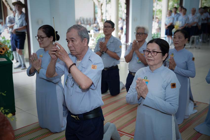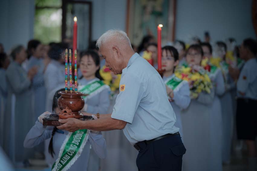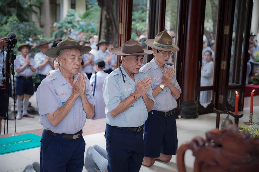 Trong khói trầm hương quyện tỏa, cảm nhận như Chư Giác linh, Chư Hương linh đang nhìn lớp hậu tấn với ánh mắt bao dung. Được Đại tăng trợ tiến, Lam viên chúng con nhất tâm tưởng niệm, kỳ siêu. Nguyện Chư Giác linh, Chư Hương linh thừa nguyện lực cao đăng tịnh cảnh, chứng giám và phù hộ cho Gia Đình Phật Tử Việt Nam sáu thời an lành, hanh thông Phật sự.