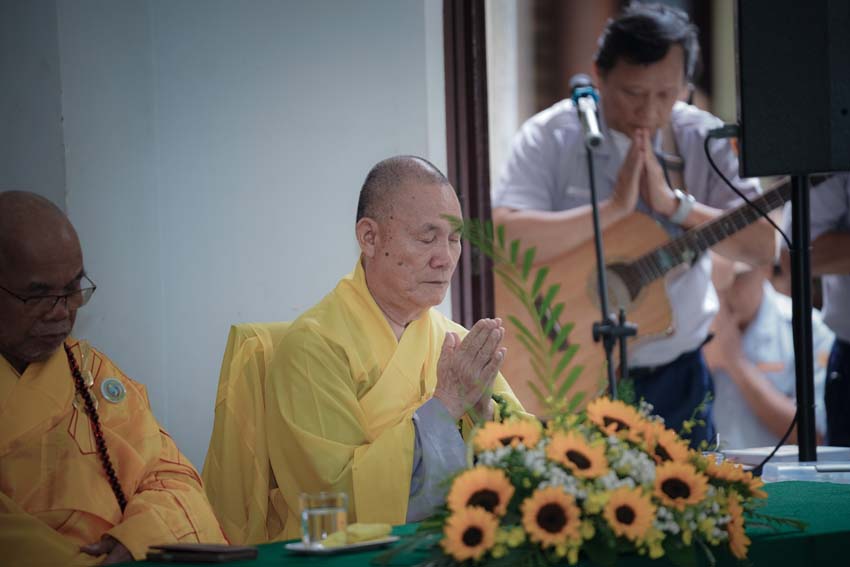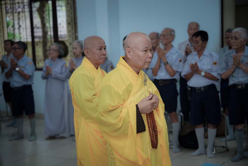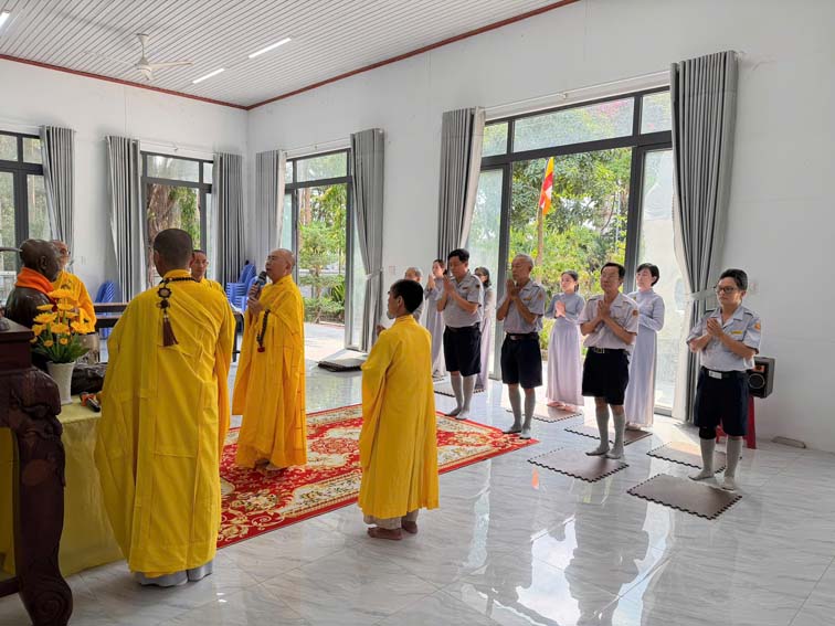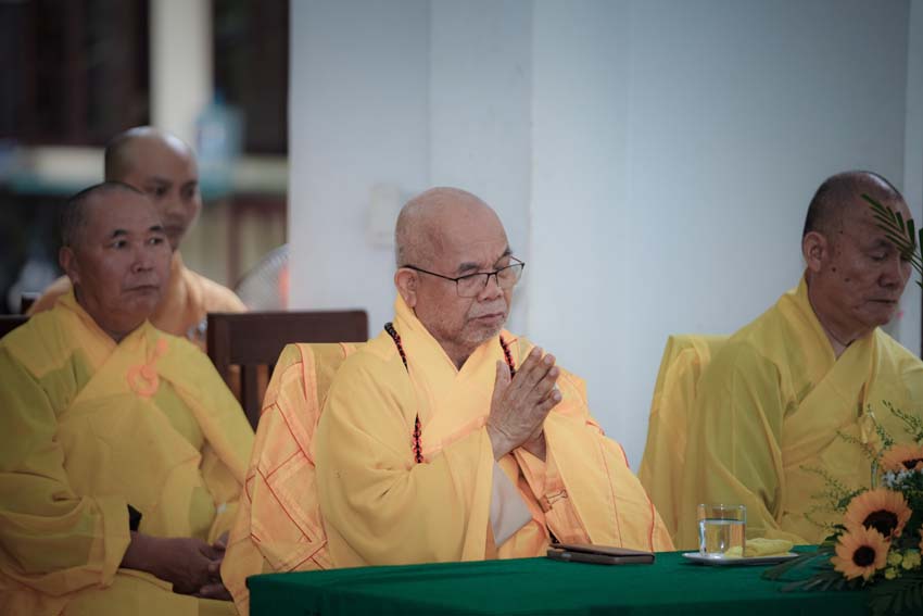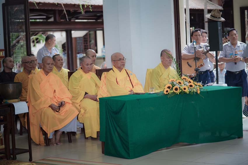Chúng hội Lam viên thành kính cung nghinh Chư tôn đức Thành viên Hội Đồng Tăng Già Bản Thệ, Hội Đồng Giáo Giới GĐPT.VN, Chư tôn đức Ban Kinh sư Tu viện Quảng Hương Già Lam, quang lâm chứng minh, cử hành pháp sự.